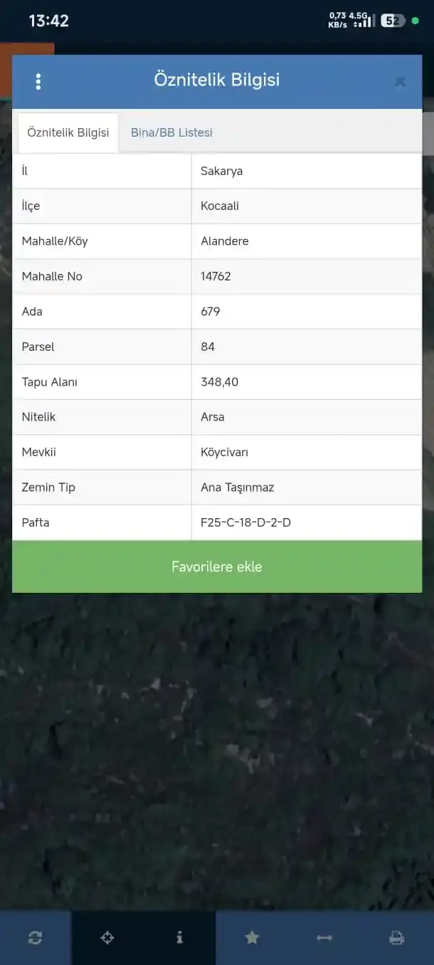 Kocaali Belediyesi İmar ve Şehircilik Müdürlüğü verilerine göre taşınmazın resmi teknik detayları: