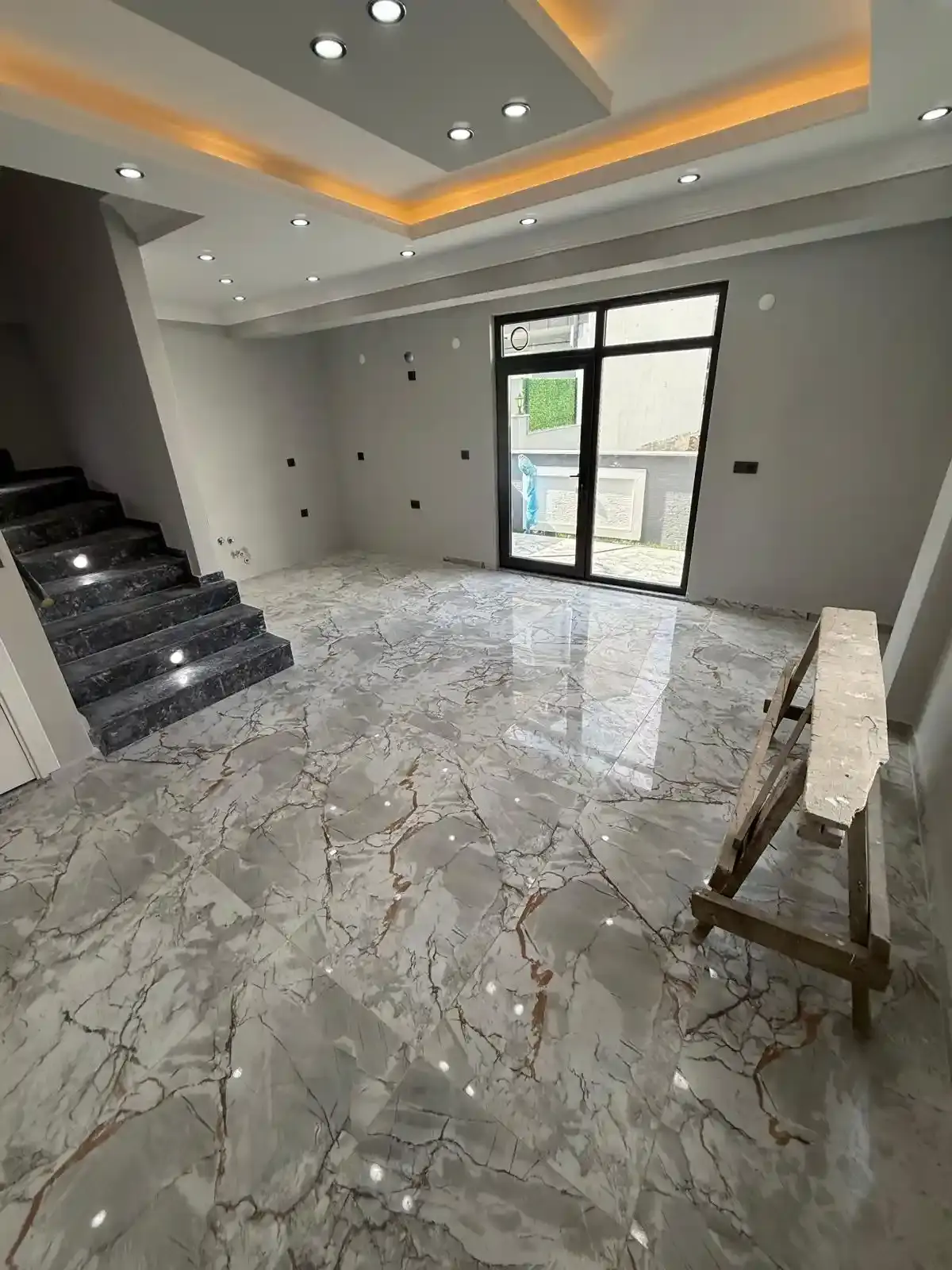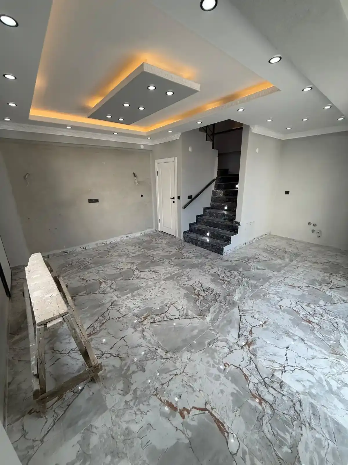 Modern ve Lüks Dizayn: Tüm zeminlerde şıklığı ve dayanıklılığı birleştiren 60x120 granit uygulaması yapılmış, tüm alanlarda devamlılık sağlanmıştır.