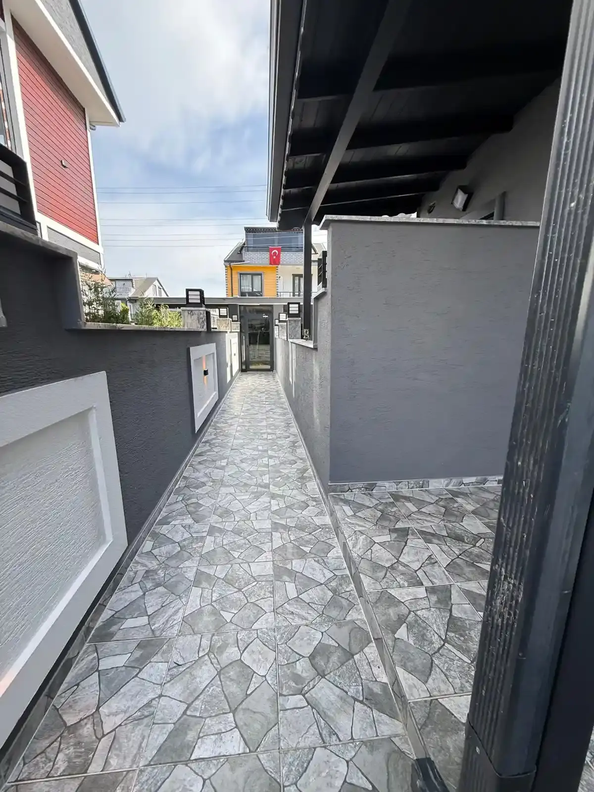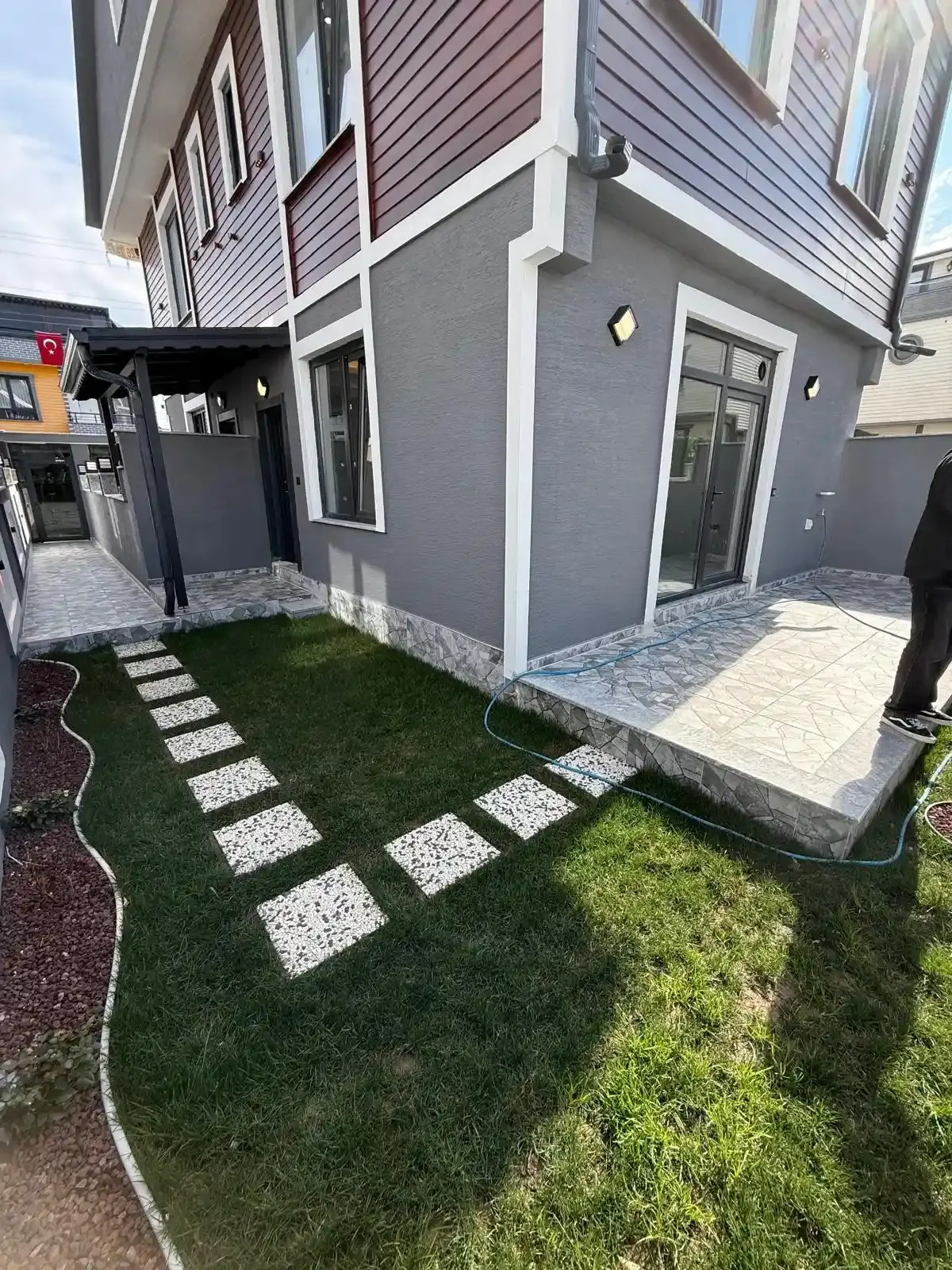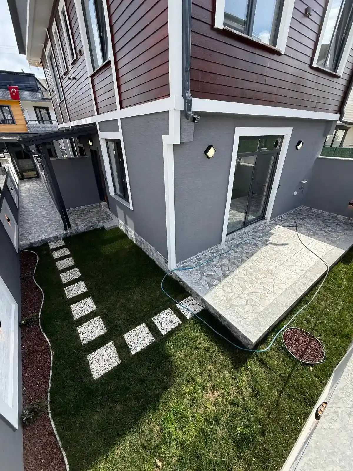 Müstakil Yaşam Alanı: Müstakil giriş kapısı ve peyzajı tamamlanmış şık bir müstakil bahçe alanı. Bahçe duvarları ve aydınlatmalarıyla güvenli ve estetik bir çevre. Veranda/Teras alanı.