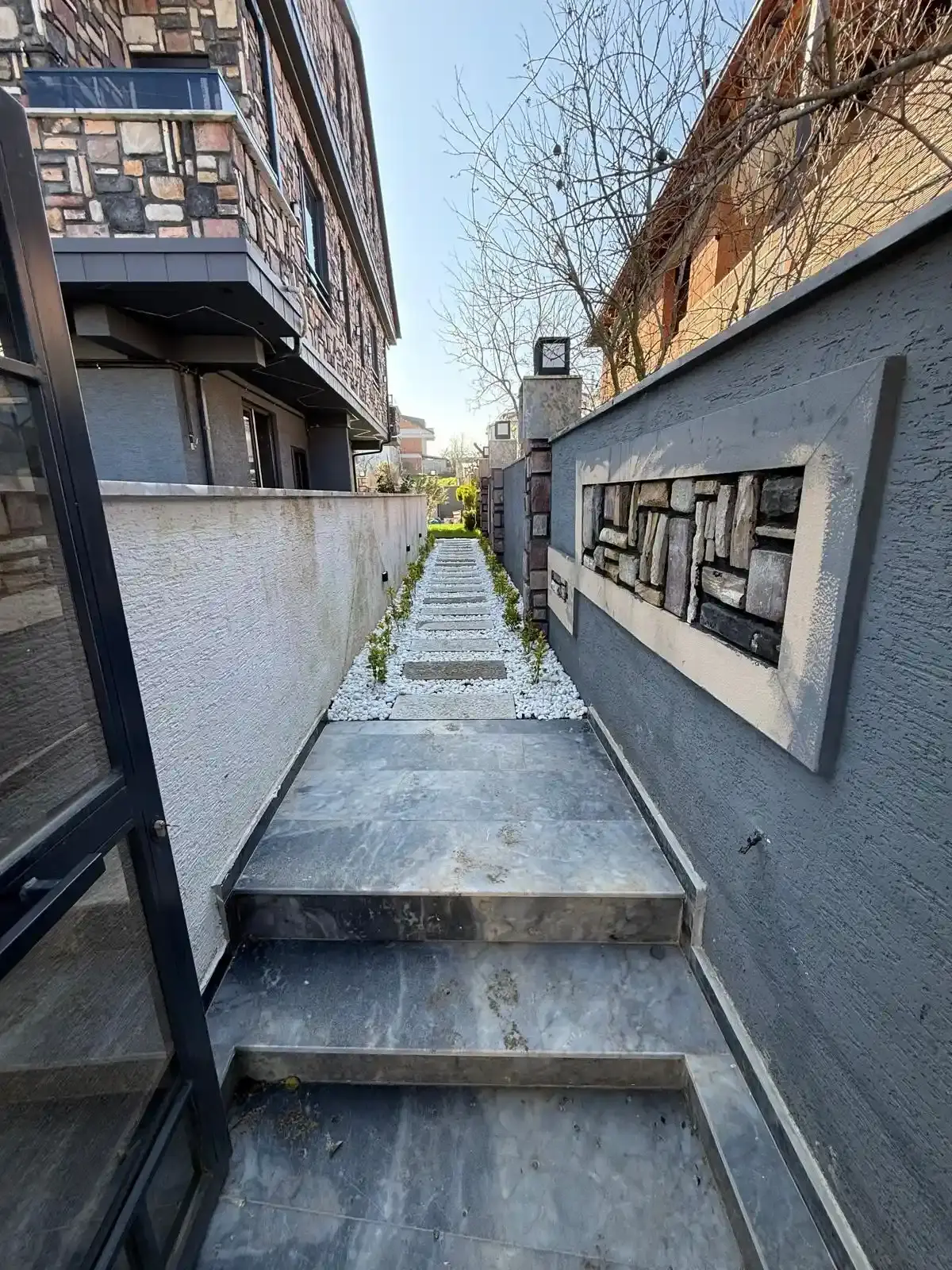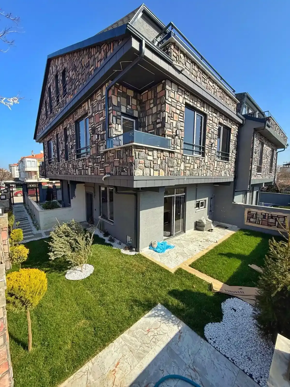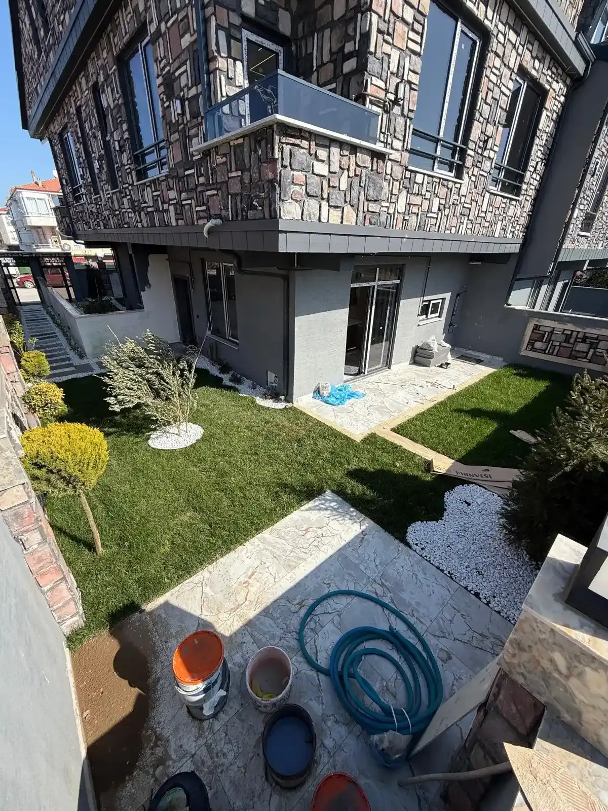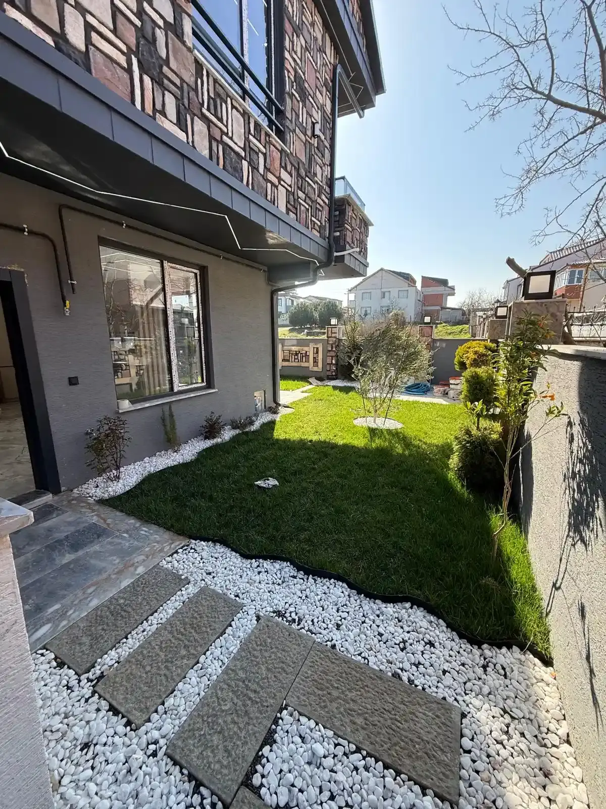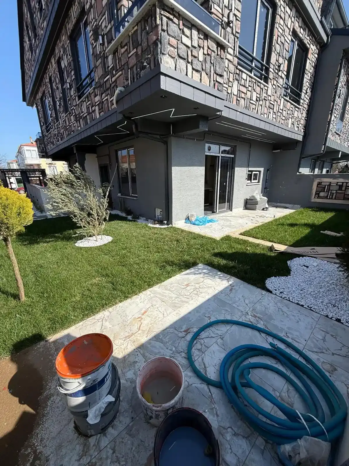 Dış Mekan: 123 m² net arsa üzerinde, havuz alanı hazır (iskan sonrası açılacak şekilde toprak altında korunmaktadır) ve peyzajı tamamlanmış geniş müstakil bahçe.